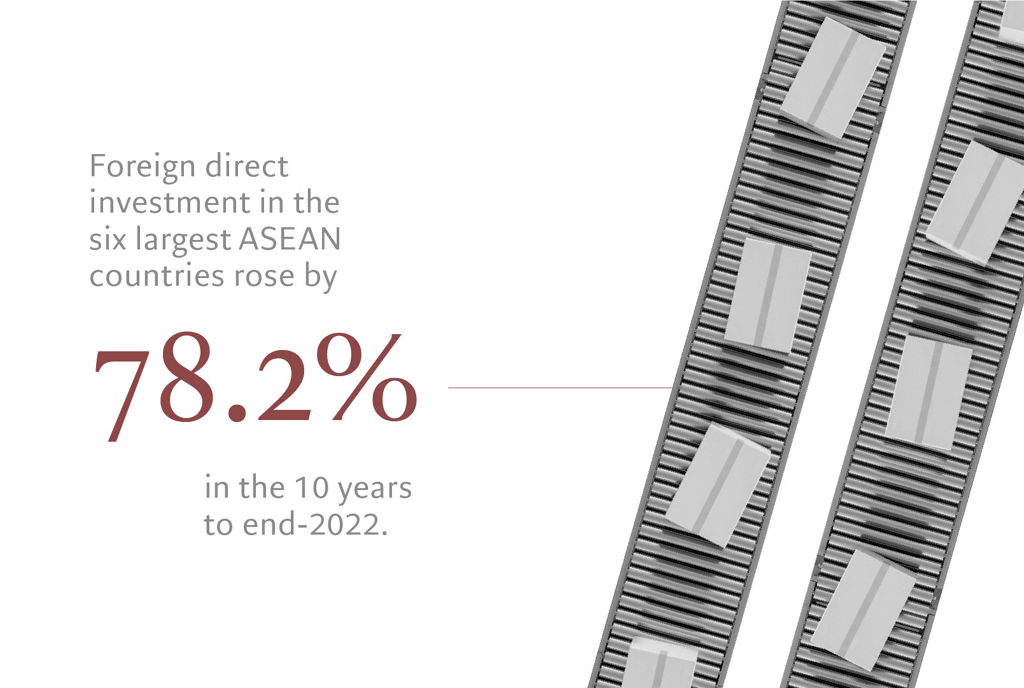 In Asia, the relocation of supply chains away from China has also led to a strengthening of regional economic integration, in many cases focused around China. This may sound counterintuitive but involves the supply of machine equipment, raw materials and components. According to data from national sources, ASEAN economies’ trade exposure to China climbed steadily from 10% in 2012 to 16% in 2022, coinciding with the increase in the number of manufacturing facilities moving to this region.