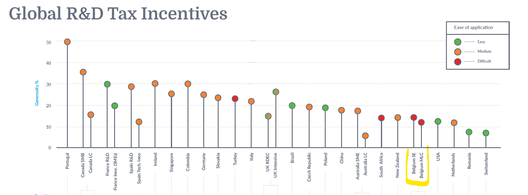 Elk jaar stellen de consultants van de afdeling Innovation Performance van Ayming, experts in de financiering van innovatie en R&D, een Benchmark op gebaseerd op de belastingregimes van Europese en niet-Europese landen. Deze diepgaande studie belicht de specifieke kenmerken van elk land in termen van beschikbare financiële steun, gulheid en gemakkelijke toegang tot deze financiering. Van de 24 landen die werden onderzocht in de 2024 Benchmark staat België op de 20e plaats in termen van gulheid. Helaas is het blijkbaar erg moeilijk om in België overheidssteun te krijgen voor R&D.
